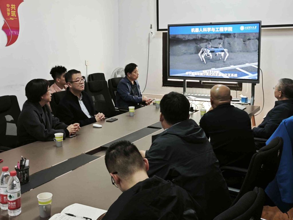 会上,熊晓燕院长对李强副总经理一行的到访表示热烈欢迎,希望双方在科研攻关、成果转化、人才培养等方面开展深度合作,实现互利共赢。王宇副院长介绍了学院自2025年成立以来,聚焦特种机器人、装备智能化、人工智能应用及医工结合等前沿方向在关键核心技术攻关方面取得的一系列创新成果。李强副总经理介绍了公司专注于高危作业场景智能装备研发,在智能巡检、管网清淤、全地形运输等领域拥有自主知识产权,致力于推动安全生产由“人工作业”向“机器人替代”转型升级。