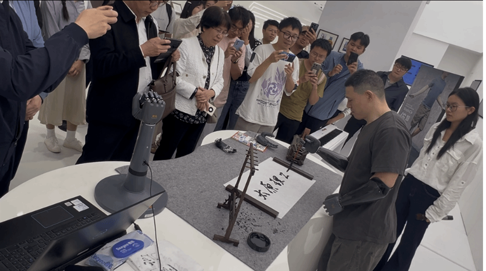 在企业展厅,学院一行先后参观了智能仿生灵巧手、智能仿生腿、非侵入式智能安睡仪设备以及脑机接口注意力训练和社交沟通训练系统等展区。强脑科技工作人员重点介绍了智能仿生装备的技术突破,以及该产品在残疾人康复、工业辅助操作等场景的落地案例,并由残疾人工作人员进行现场展示。