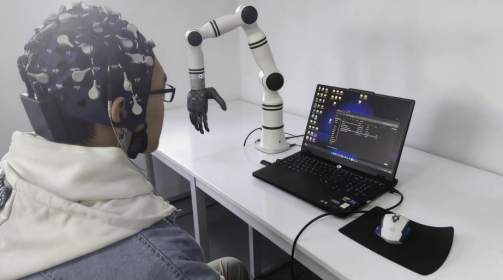 近日,由我院师生与浙江强脑科技公司技术人员组成的联合攻关小组进行为期两周的密集调试,成功利用非侵入式脑电与肌电混合接口设备,实现了对六自由度协作机械臂与四足机械狗的协同、直观操控,这一成果标志着我院在脑-机-机器人交叉融合研究方向上迈出了坚实而关键的一步。